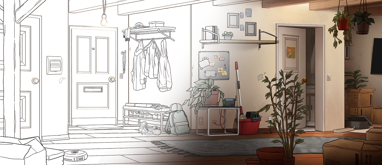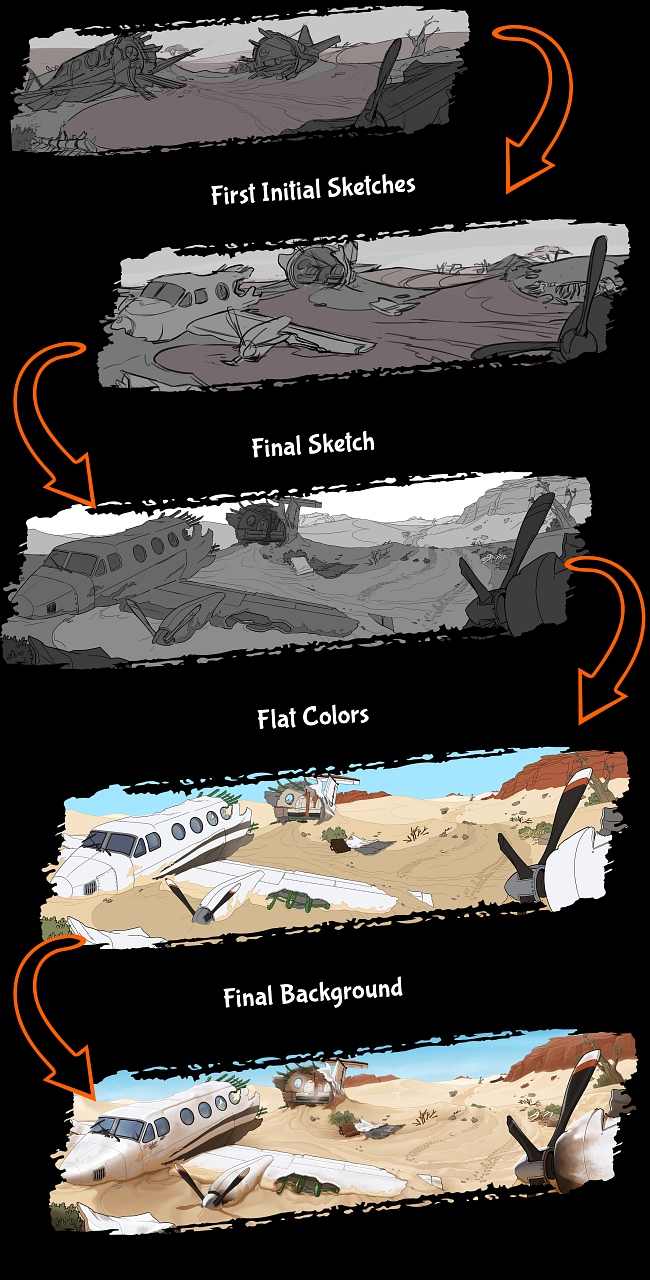 Von der Skizze bis zum fertigen Hintergrund: Alle Hintergründe zu The Adventures von Bryan Scott wurden liebevoll gezeichnet und koloriert.