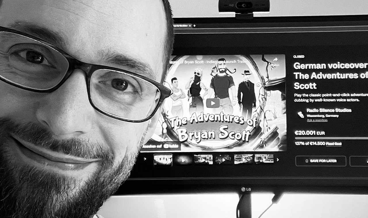 Neben Grafik, Animation und Musik spielt auch die professionelle Vertonung eine zentrale Rolle im Projekt. Für „The Adventures of Bryan Scott“ konnten mehrere bekannte Synchronsprecher gewonnen werden, darunter Rolf Saxon und Alexander Schottky, die vielen Adventure-Fans durch ihre Arbeit an der Baphomets Fluch-Spielereihe vertraut sein dürften. Die Entwicklung des Spiels wurde durch Crowdfunding unterstützt: Auf Kickstarter kamen 39.089 Euro bei einem Ziel von 24.500 Euro durch 1.065 Unterstützer zusammen. Ergänzend folgte zur Finanzierung einer professionellen deutschen Sprachausgabe eine Indiegogo-Kampagne, bei der innerhalb von 27 Tagen insgesamt 20.001 Euro von 14.500 Euro Zielwert durch 381 Unterstützer erreicht wurden. Beide Kampagnen sind inzwischen abgeschlossen.